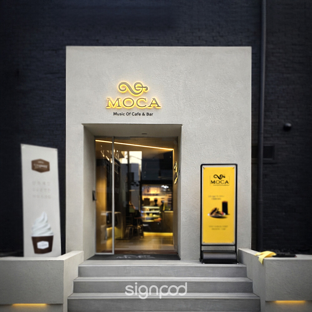 [카페간판] 강남 모카카페 외부 간판 및 실내 사인