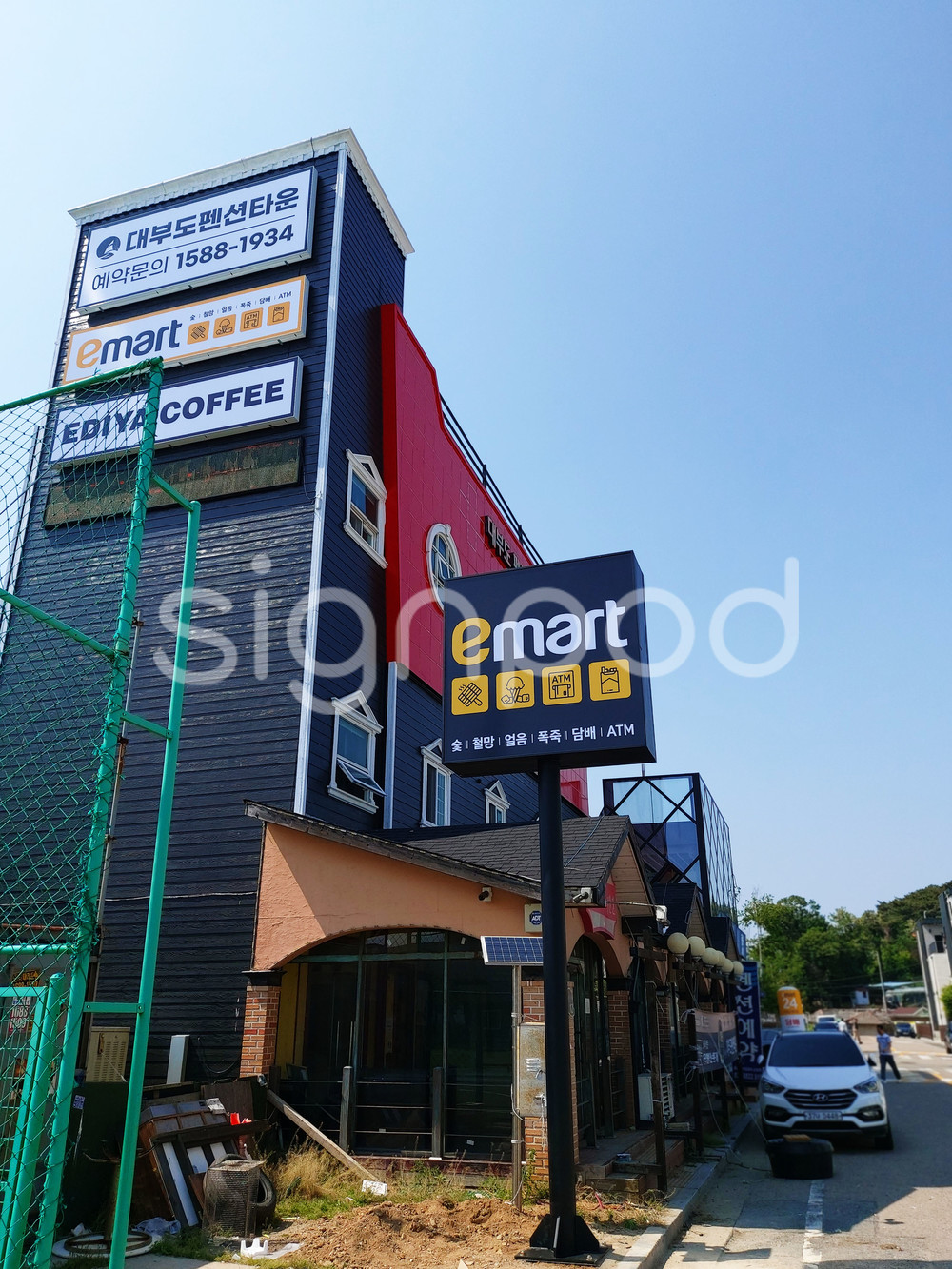 대부도에 위치한 펜션타운 간판
